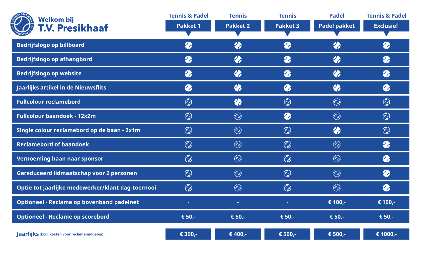 Sponsormogelijkheden bij Tennisvereniging Presikhaaf